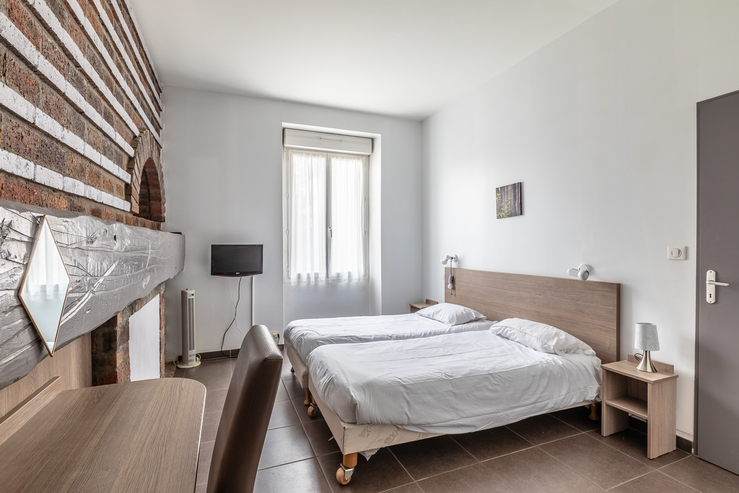 Exposés Sud-Ouest, des studios au deuxième étage avec balcon de 3m2, lit en 140, Kitchenette équipée, salle de bain avec baignoire, WC. Aussi, au fond du couloir, au calme, studio lumineux avec deux grandes fenêtres, exposé Nord-Est, un lit en 140, Kitchenette équipée, une salle de bain avec douche.